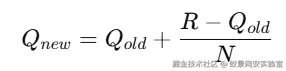 R 是这次的实际奖励;N 是该臂被选过的次数;Q 是对该臂期望奖励的估计。