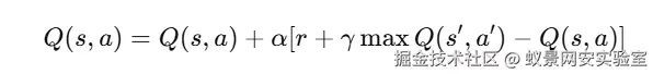 在状态 s 采取动作 a 后,得到奖励 r,下一状态 s' 的最大潜在价值是 max_future_q,于是把当前的 Q 值往新的期望值方向更新一点。