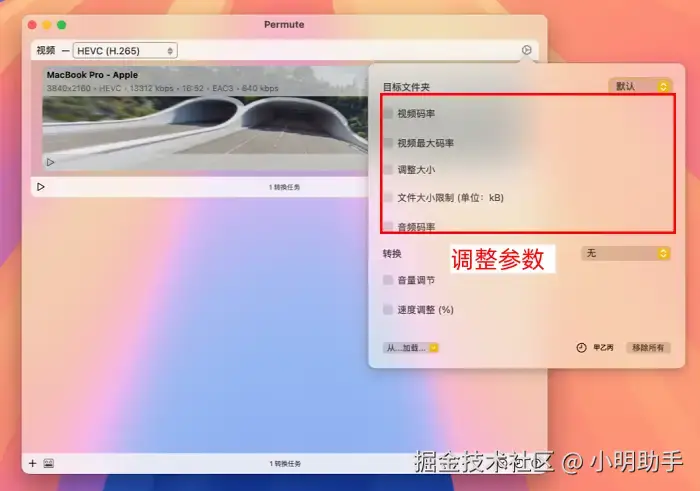 Permute是专属于苹果系统的音视频转换工具,支持视频、音频、图片等文件转换,使用界面很简单,操作步骤同样如此,只需要将文件拖入其中,选择格式后即可开始转换。但是该软件并不支持高级高级调整,也仅使用于一款系统,局限较大。