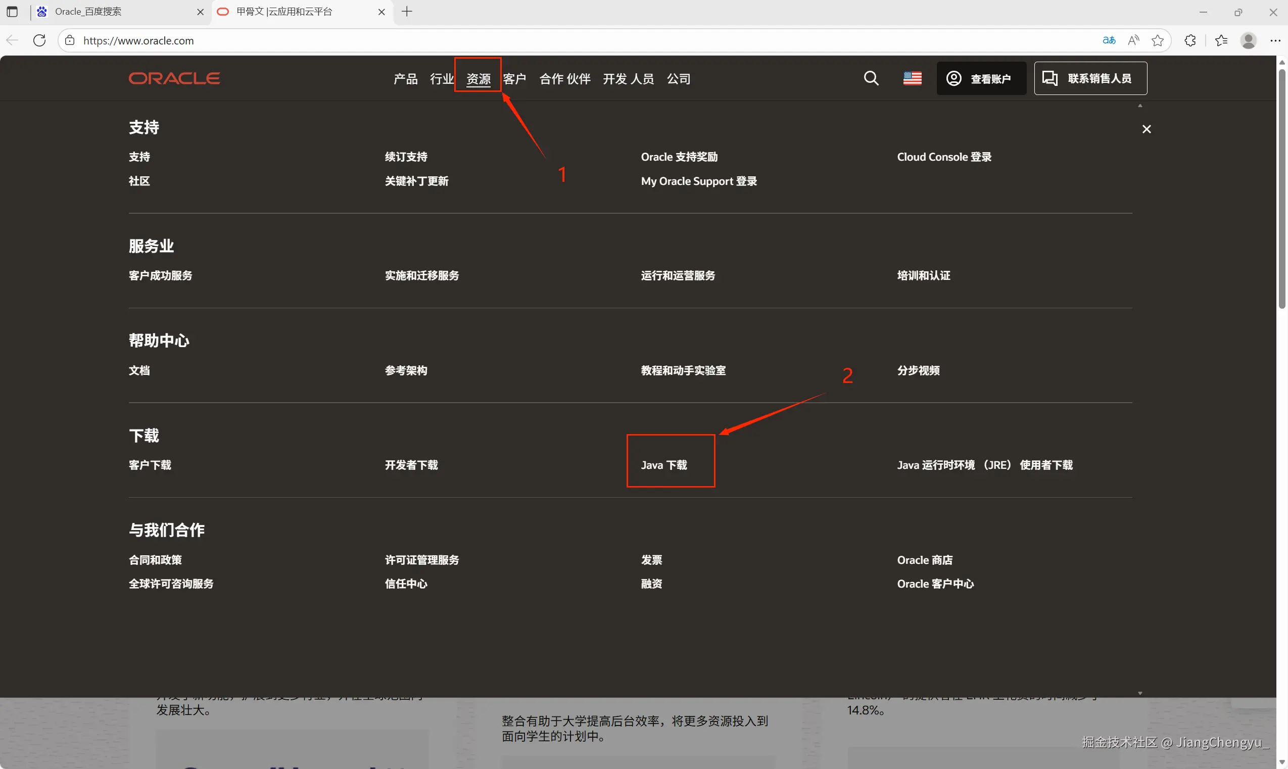 (进入Oracle主页后点击上方导航栏的搜索——Java下载)