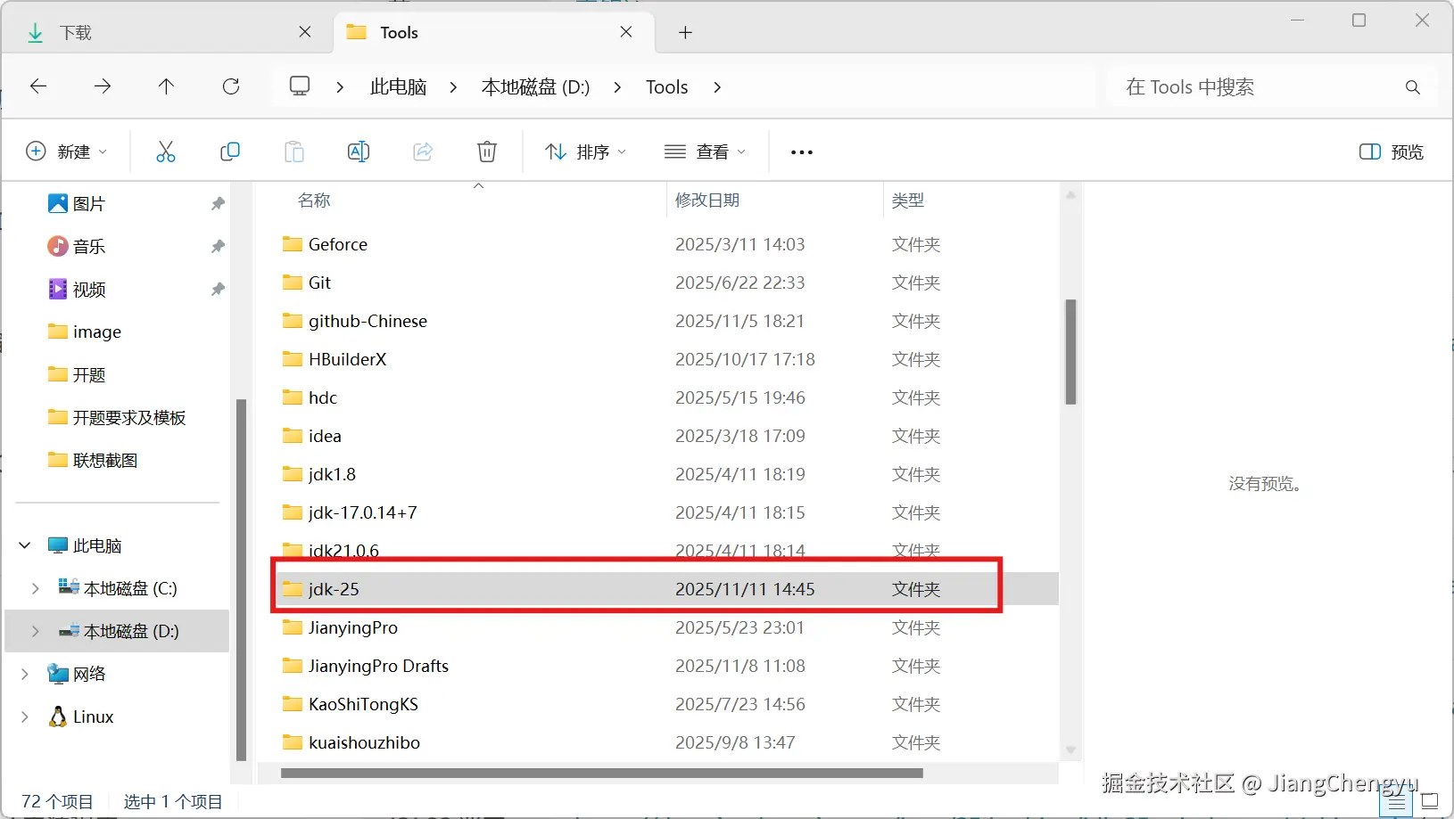 (解压出来的文件包名叫jdk-对应版本;这里可以看到我这里有许多的Java版本,这是因为想要玩不同版本的MC可能需要的Java版本不同,自己的电脑里可以存在许多不同版本的Java)