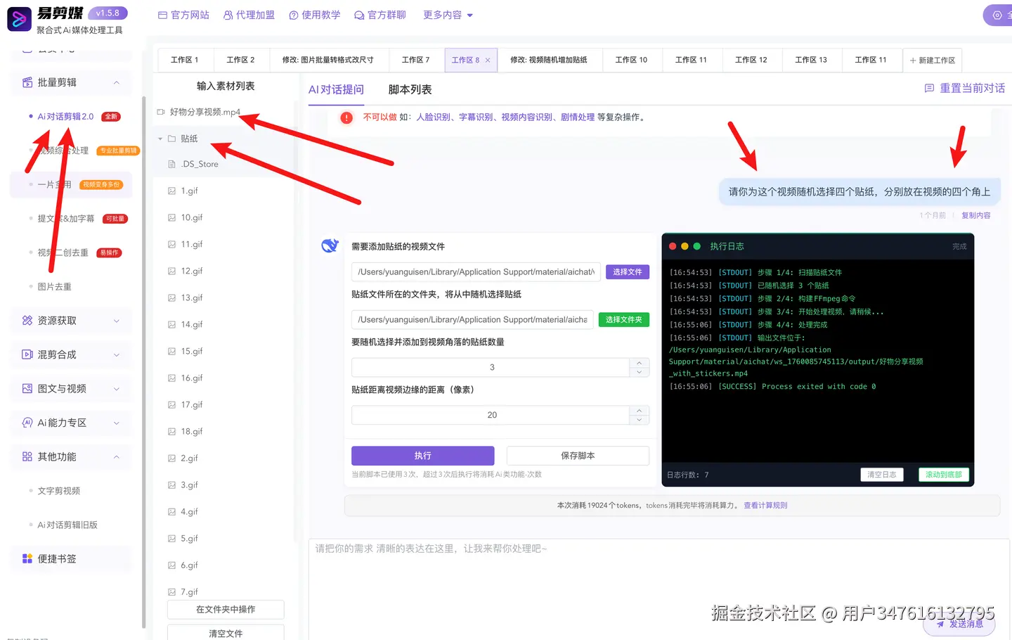 【Ai对话剪辑2.0】堪称最强剪辑工具,它能根据每个人的不同需求自动生成剪辑方案。比如我测试时,让它为视频添加贴纸的需求,效果就特别惊艳。