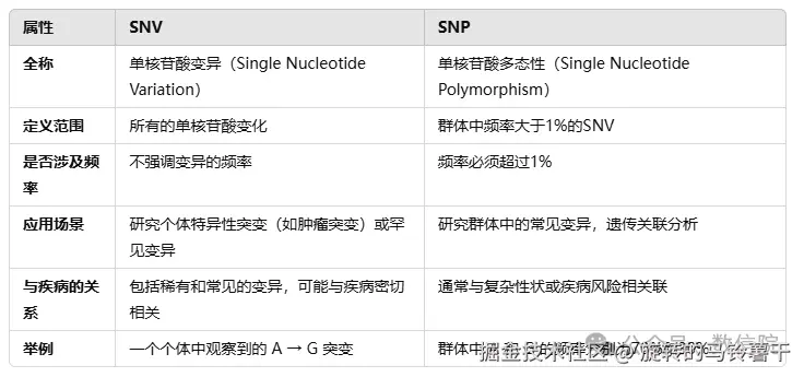 1.SNP是SNV的一个子集,但它更强调在群体中的频率。