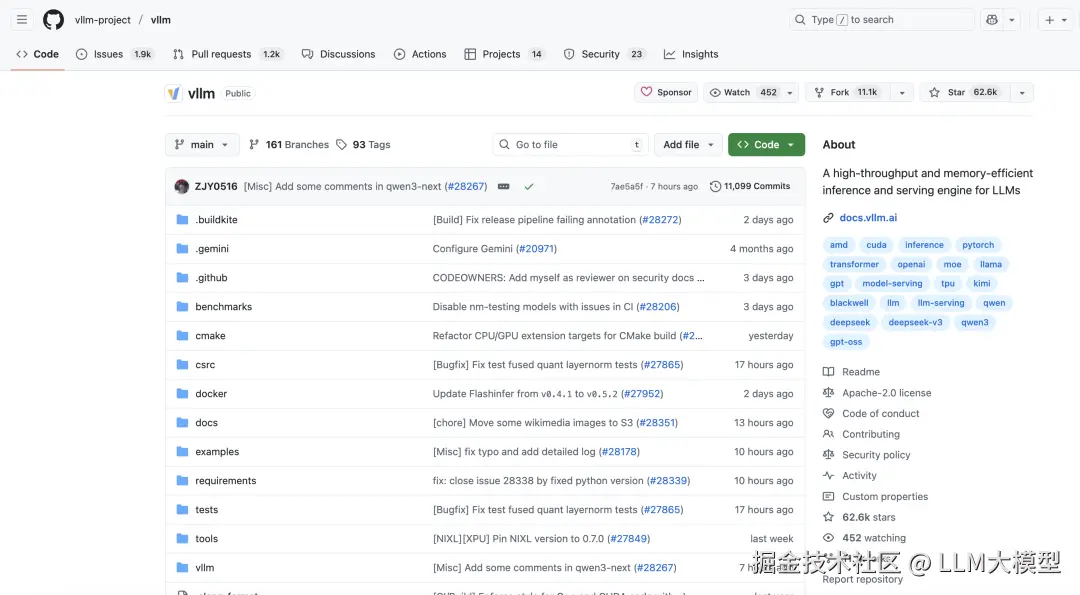 vLLM: 轻松实现大模型快速推理和部署(62.6k stars)