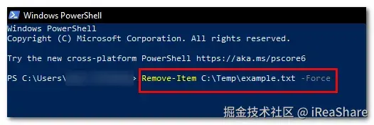 您还可以使用 PowerShell 强制删除 Windows 11 或 Windows 10 电脑上的文件。步骤与使用 CMD 类似。