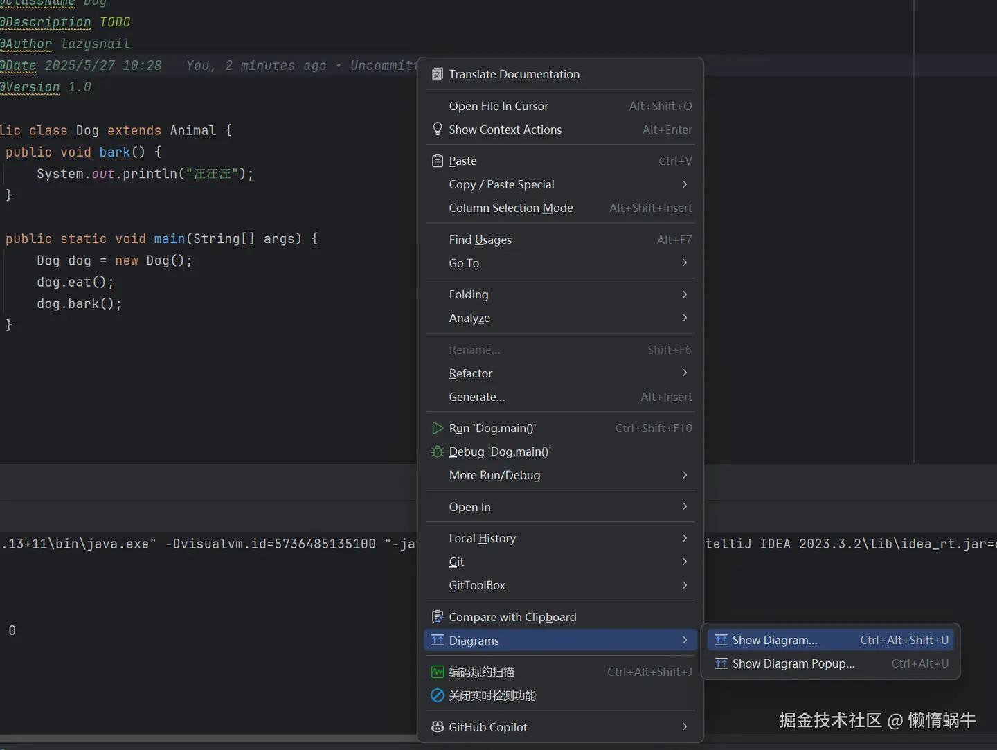 Dog是定义的一个子类,通过extends关键字继承了Animal类。