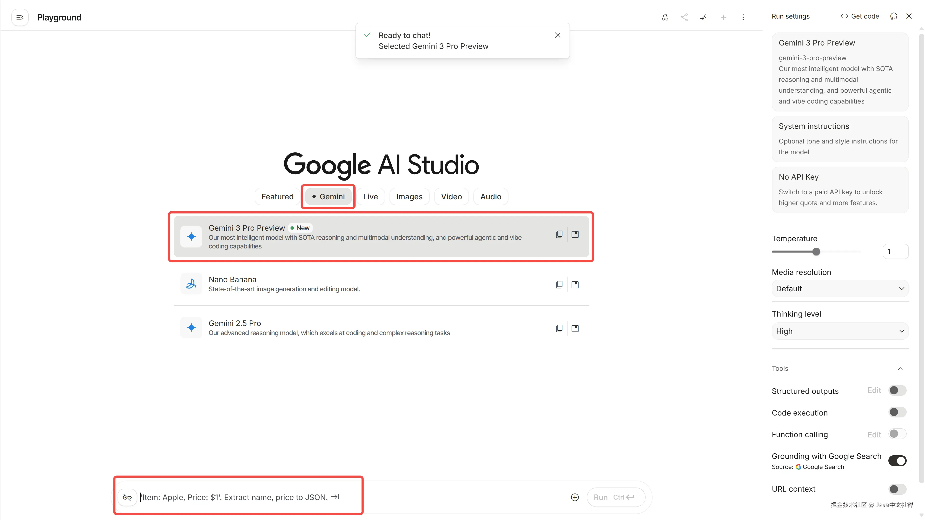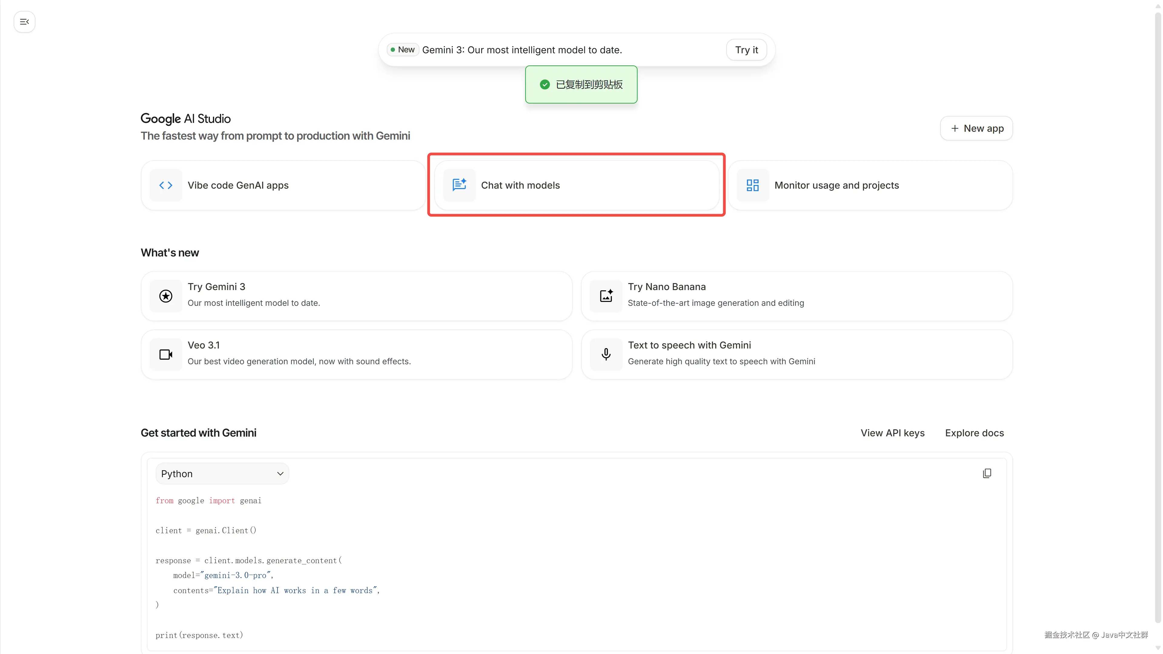 - 访问 AI Studio 官网:aistudio.google.com/