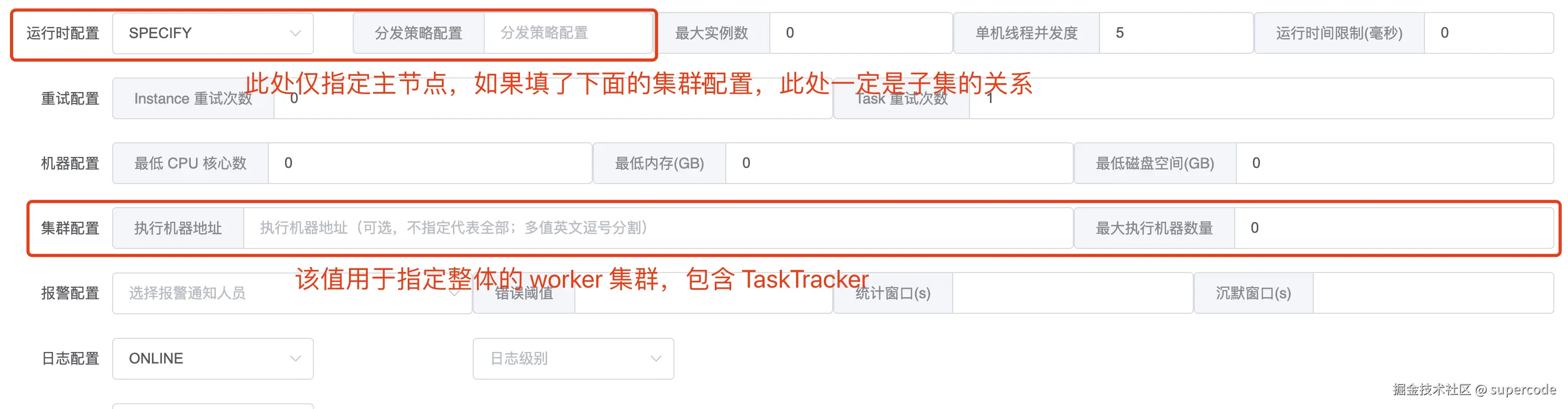 - 执行机器地址,指定集群中的某几台机器执行任务
