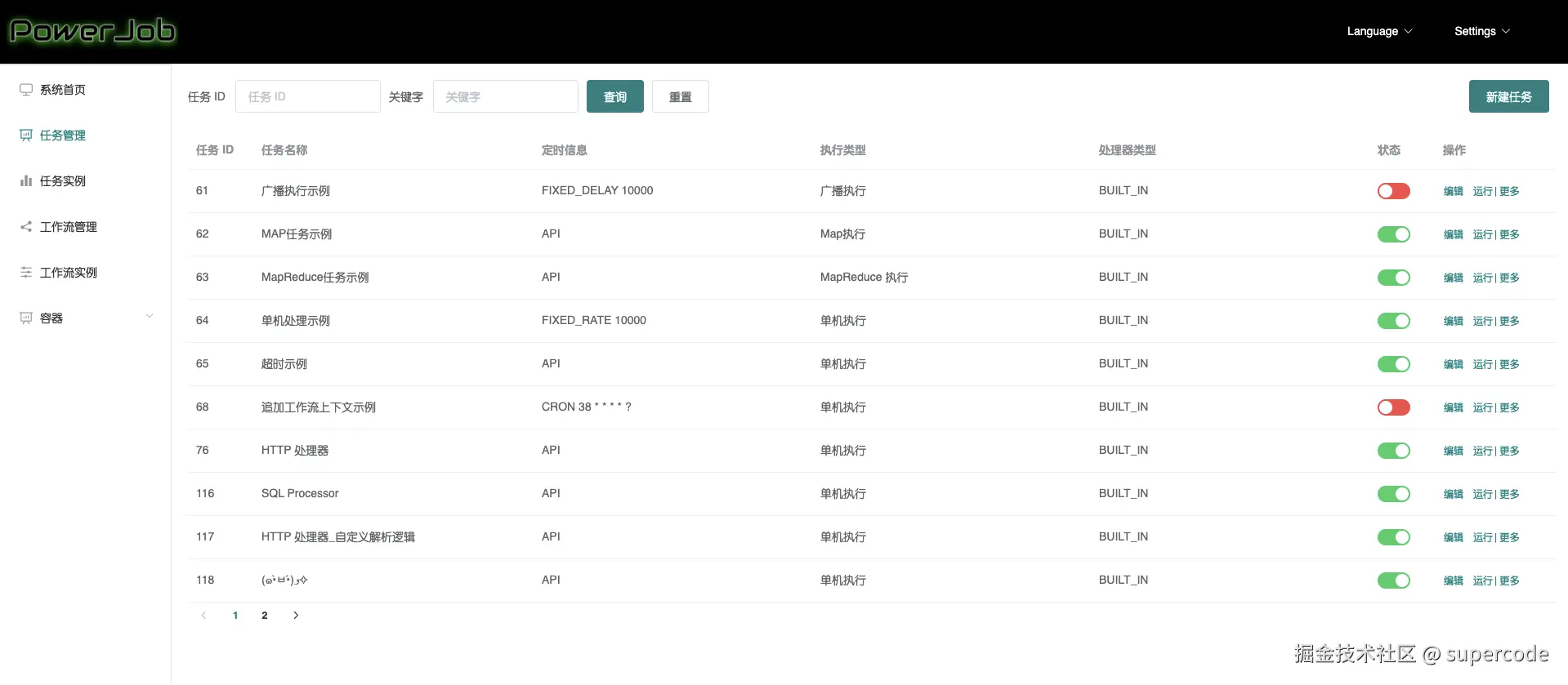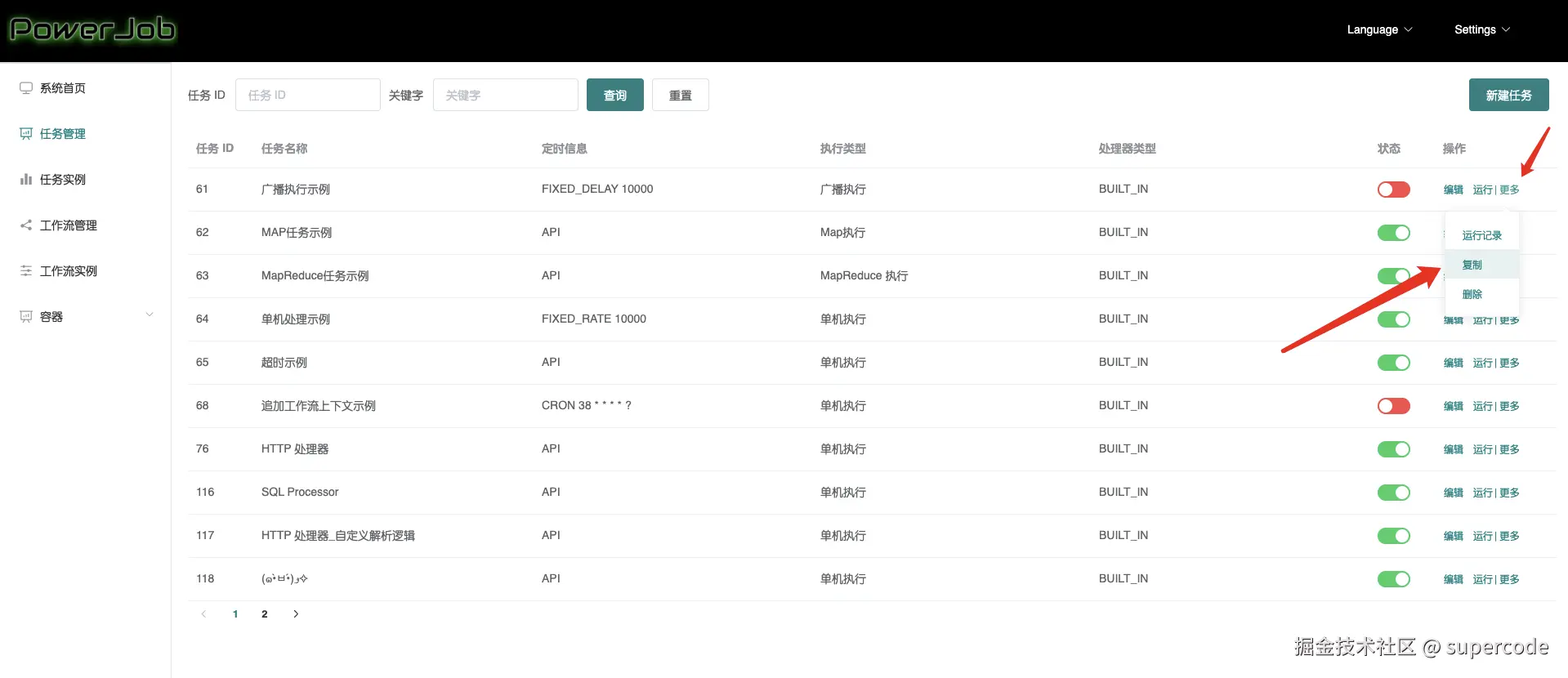 powerjob-console 的主要功能如下