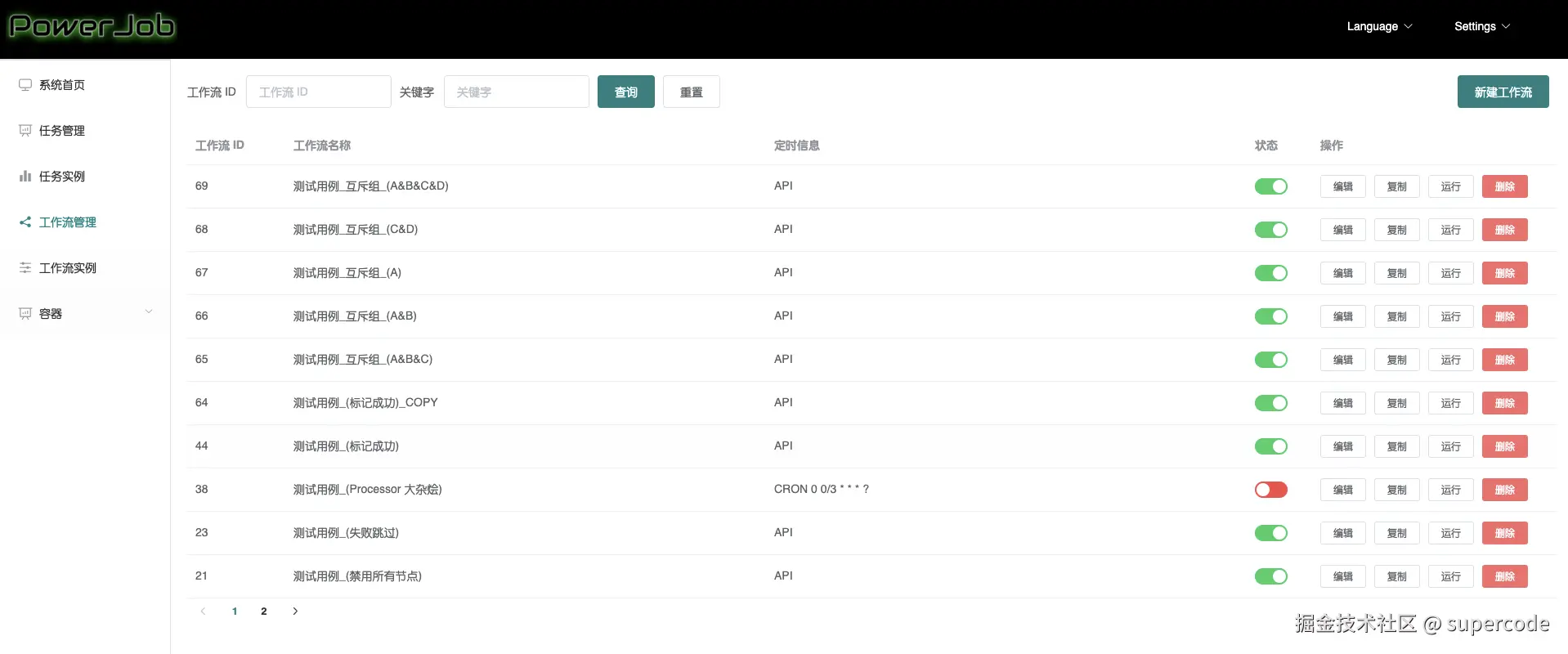 直观地展示当前系统所管理的所有工作流信息,并提供相应的运维方法。