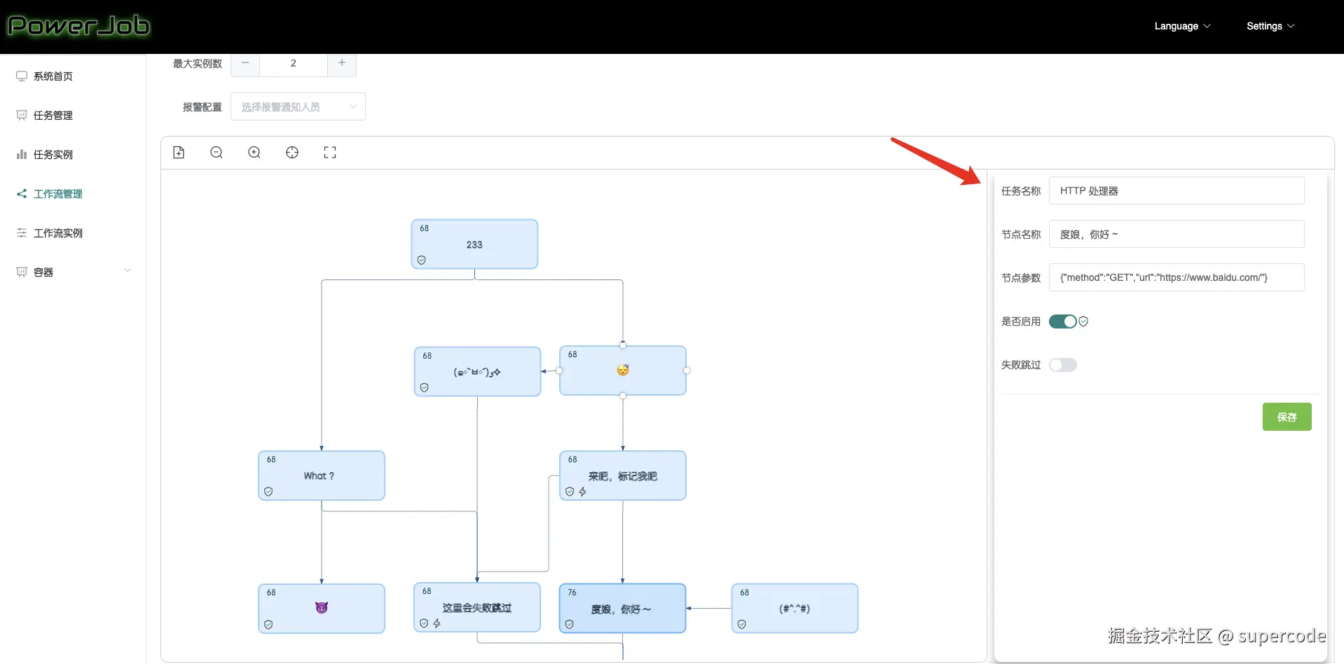 失败跳过: 当这个节点执行失败的时候不会打断整个工作流的执行