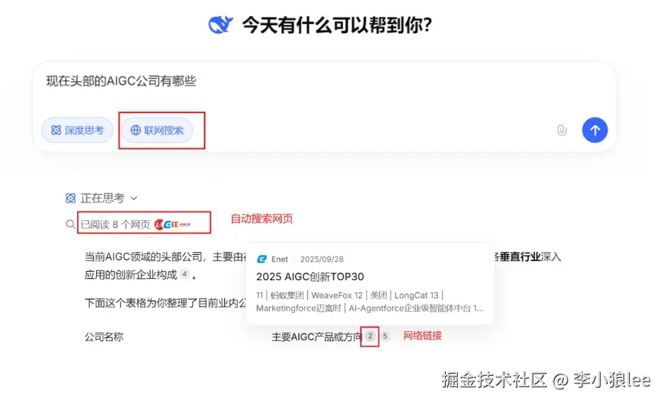 2.作为高级“搜索引擎” :比起百度等搜索引擎,AI搜索数据有更多的灵活性。勾选“联网搜索”,只需要生活化的对话就可以对网络信息检索、总结一条龙服务。