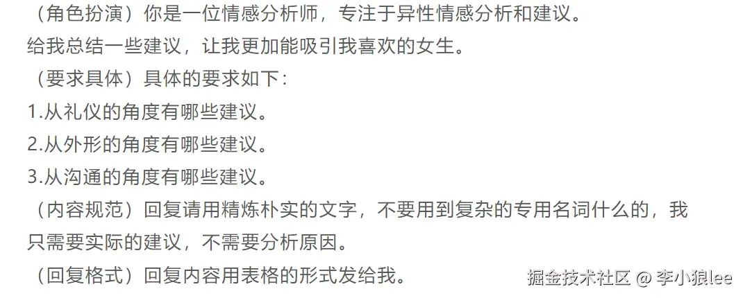 技巧三:当你需要特定规范的内容时,最好给出示例,例如