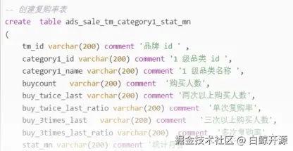 - 主题宽表示例:按照业务主题,生成具有较多字段的宽表,用于业务查询、OLAP分析等。例如,dws_sales_summary宽表可包含销售额、复购率、用户地域分布等字段。