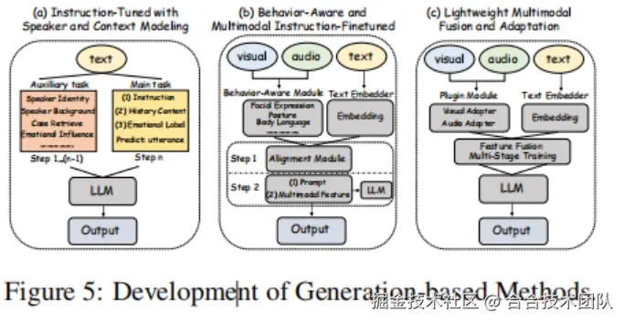 **利用多模态语言模型(LLMs)的高效微调方法。**多模态LLMs在使机器跨模态学习方面取得了重大进展。一些模型越来越多地应用于多模态情感识别(MERC),能够实现不同模态下的零样本或少量样本泛化。在MERC中使用LLMs为捕捉更深层次的语义和对话线索开辟了新的可能性,而不仅仅是表面的情感信号。然而,对于情感理解的高效微调这些模型仍然面临挑战,尤其是在资源有限和文化多样化的环境中。如何高效地适应多模态语言模型(MMLMs),以捕捉不同数据集、语言或跨文化背景下情感的细微差别,仍然是一个开放的研究领域。