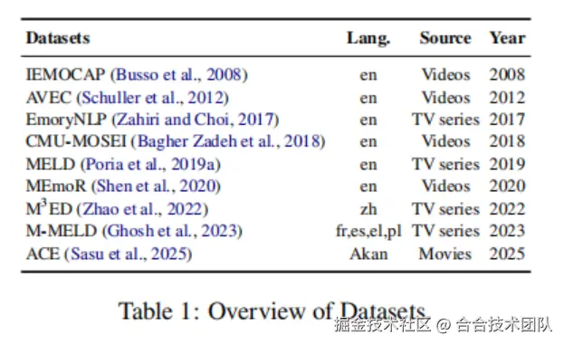 MERC旨在通过整合语言、声学、视觉信号等多种模态,来理解情感。尽管最近的研究引入了多种建模策略,但在数据稀缺、模态对齐以及跨语言和文化的泛化方面仍面临重大挑战。