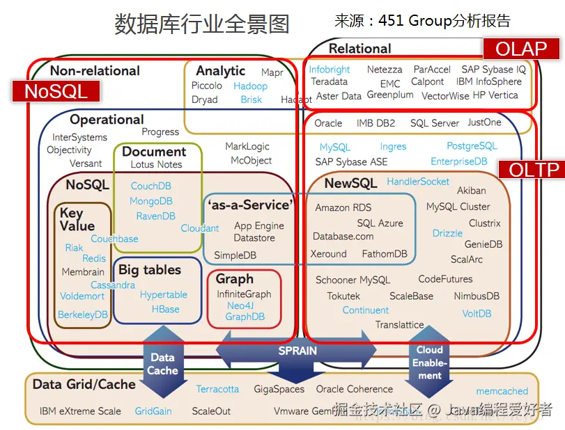 但同样面临的问题是一种NoSQL数据库到底是OLAP还是OLTP,下面是网上找的一张图,也没有对NoSQL进行明确的归类。