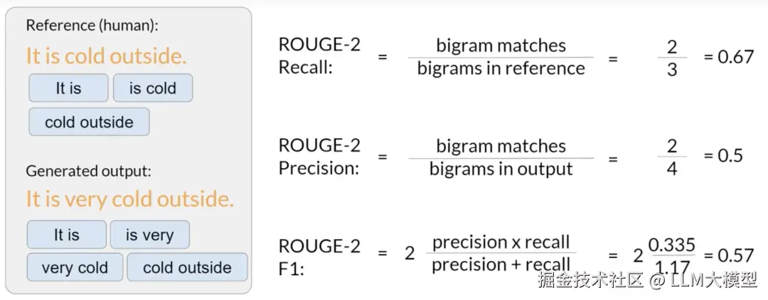 ROUGE-2: 基于 bigram(二元词)的匹配 。它通过比较bigram 的重叠度来衡量模型生成摘要的流畅性和连贯性。
