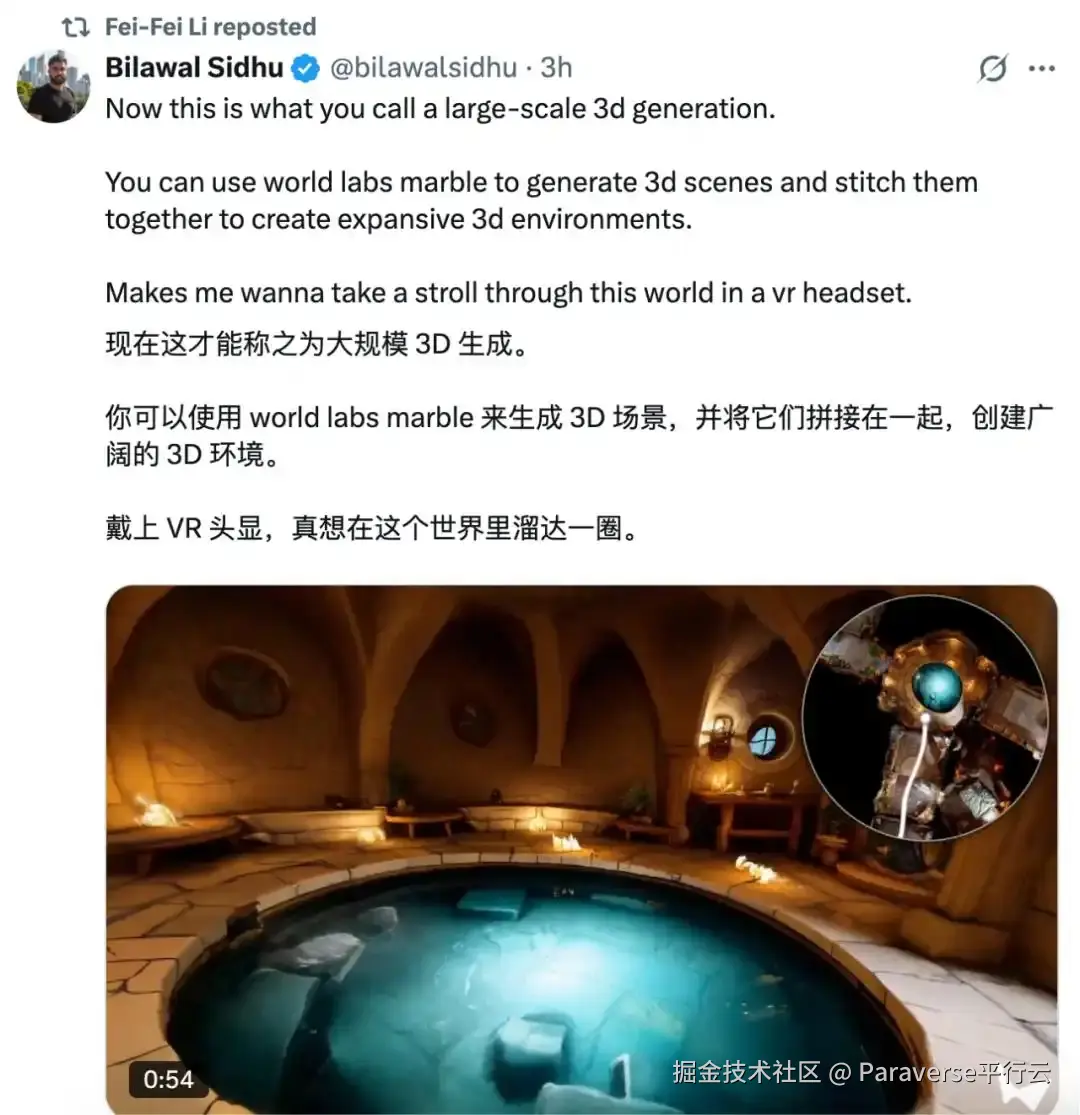 已经有开发者利用Marble打造属于自己的VR世界了,0 代码、低门槛的特性,将3D场景的生成壁垒彻底打破。