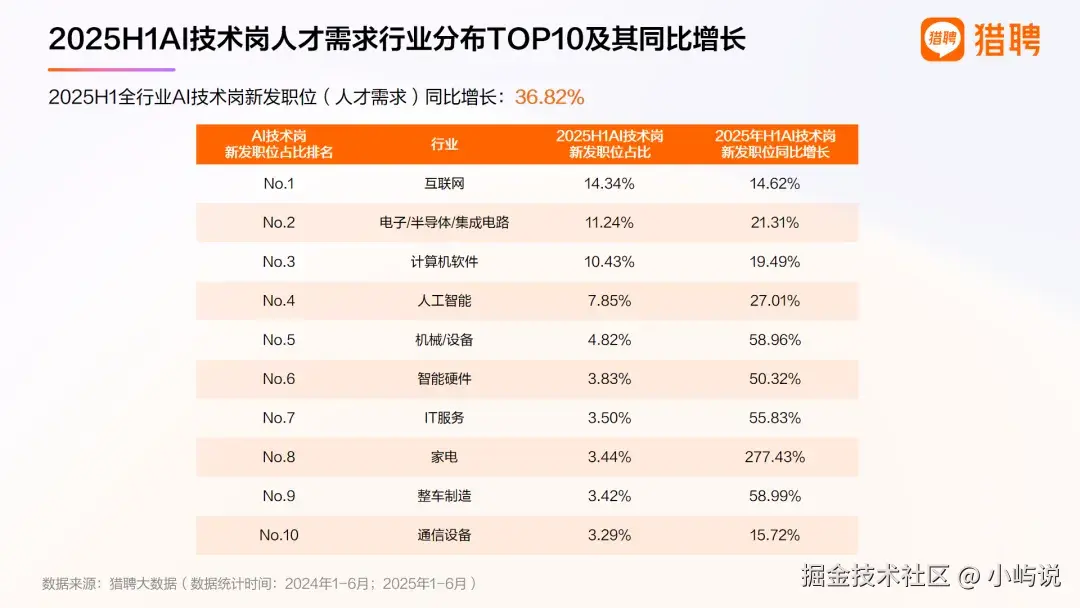 AI技术岗需求还在增长区间(增幅超36%),人才缺口大、工资高、流动快。