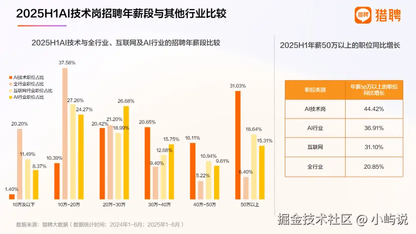 AI技术岗50万以上年薪的职位占比高达31.03%。