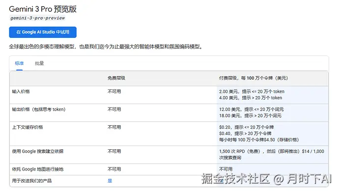 在 Gemini API 中,官方定价(Standard 标准模式):