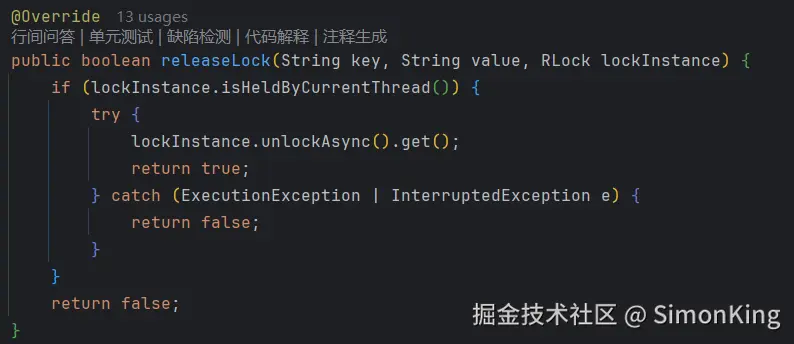 释放锁就比较简单了。根据Lua脚本,先查询对比,然后根据结果删除对应的key。