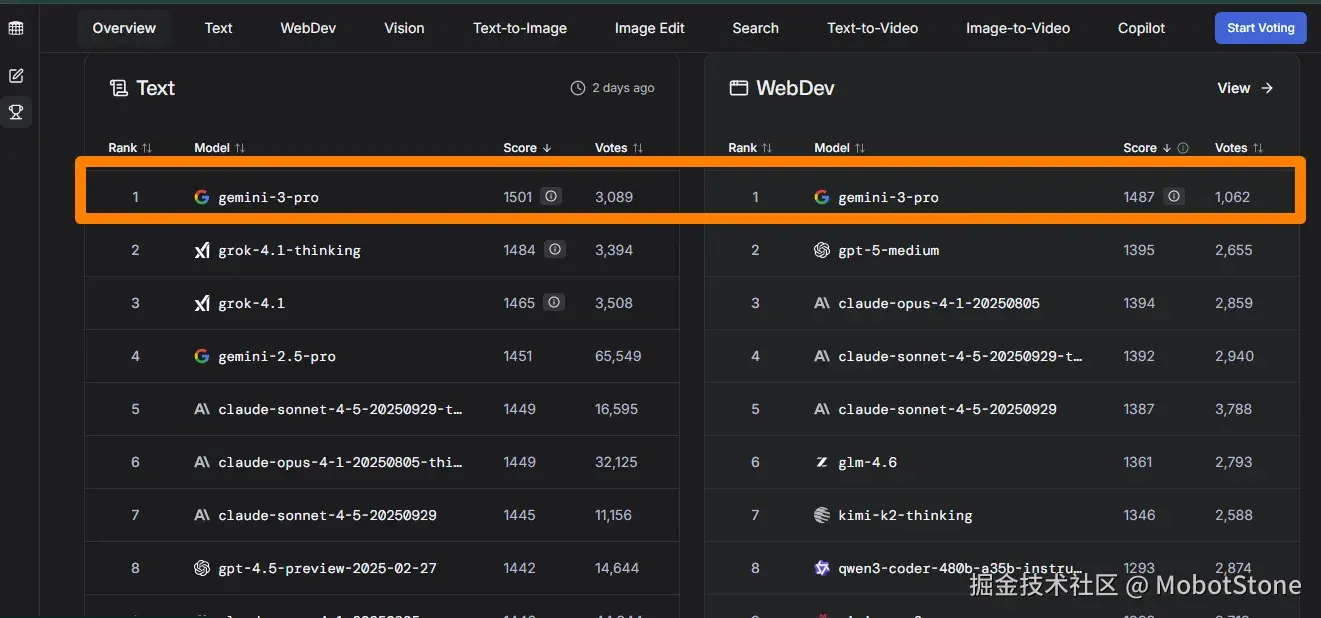 从第三方评测来看,Gemini 3 Pro 在 LMArena 上拿到了 1501 分,已经把前代的 1451 分甩在身后,同时也超过了目前市面上其他所有主流前沿模型。数据当然不是全部,但至少说明一件事:这不是例行公事的“小升级”,而是一次有备而来的重提速。