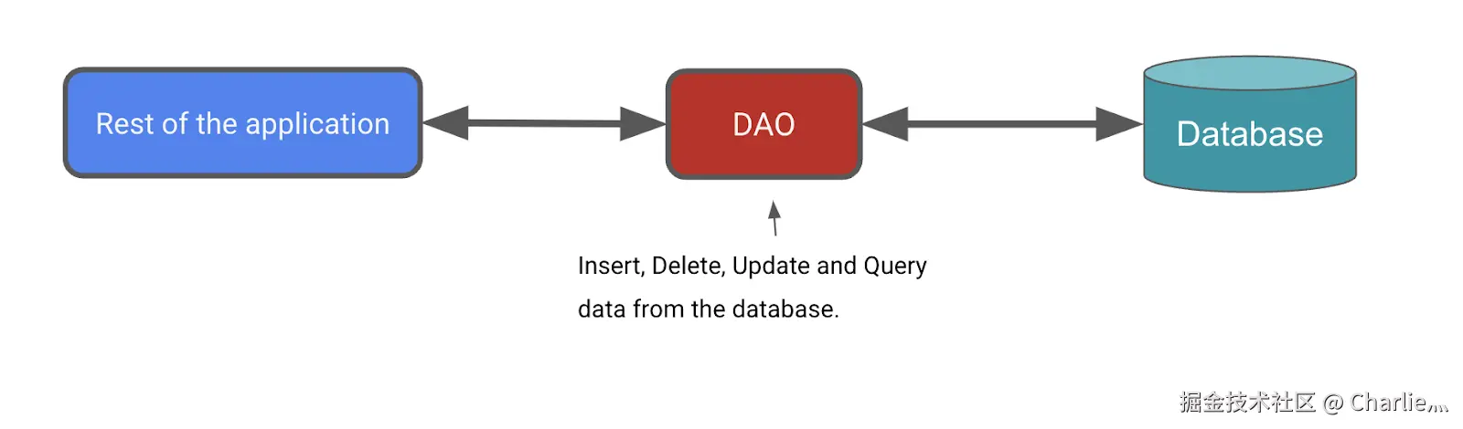 DAO 的功能在于,让在底层持久性层执行数据库操作所涉及的所有复杂性与应用的其余部分分离。这样,就可以独立于使用数据的代码更改数据层。