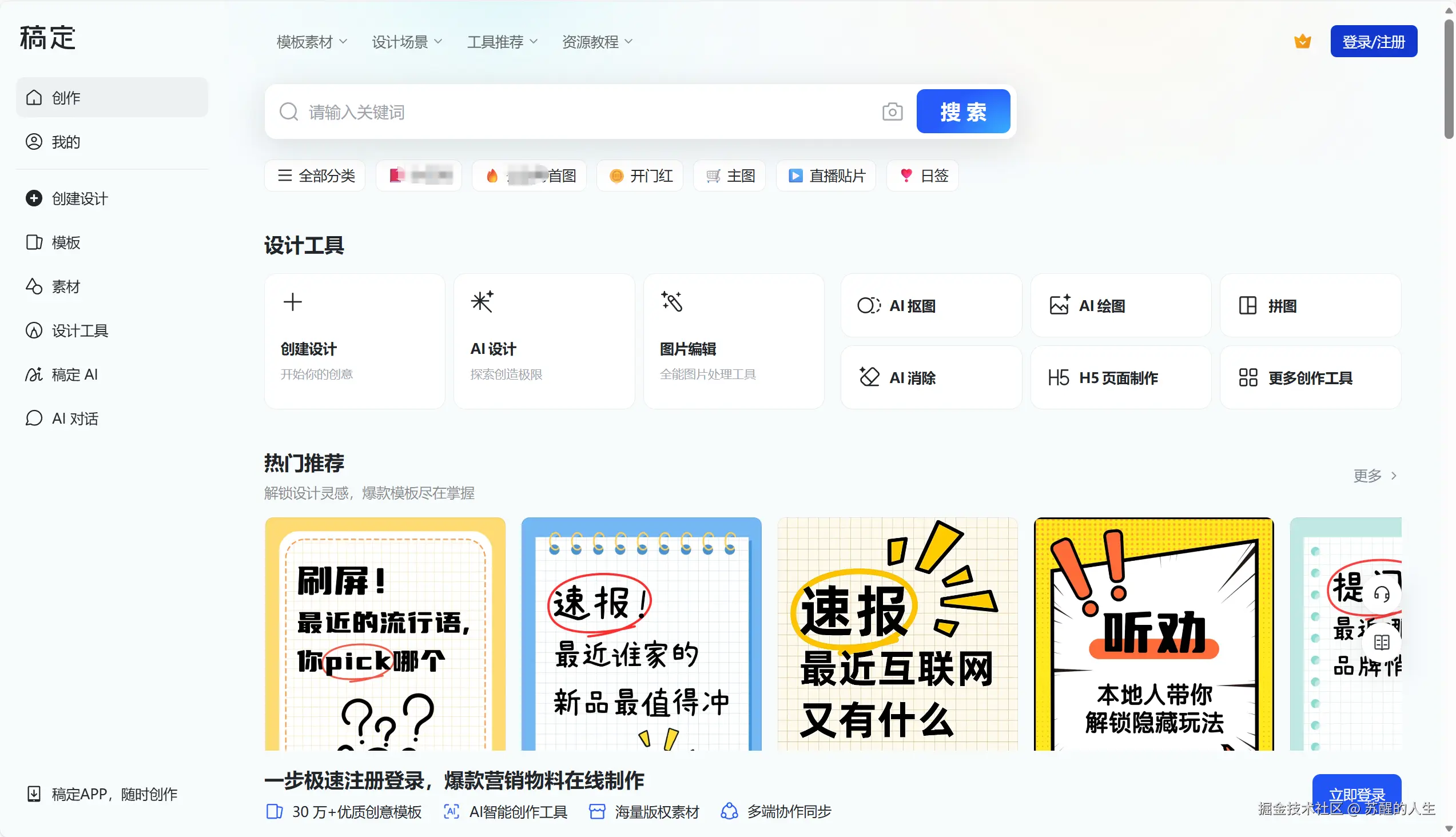 稿定设计是一款老牌在线模板设计平台,近年来新增了AI生成海报功能。