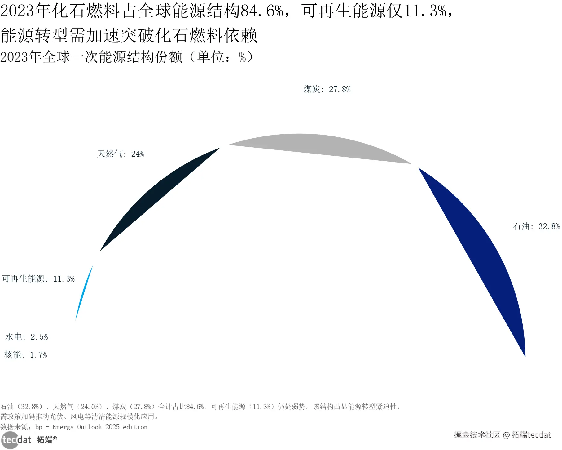 2023年全球能源结构中,石油(32.8%)、天然气(24.0%)、煤炭(27.8%)合计占比84.6%,可再生能源仅占11.3%。3秒解读:化石燃料仍主导全球能源结构,转型紧迫性凸显;对应人群行动建议:能源企业需制定明确的化石燃料替代路线图,投资者可加大可再生能源资产配置比例。