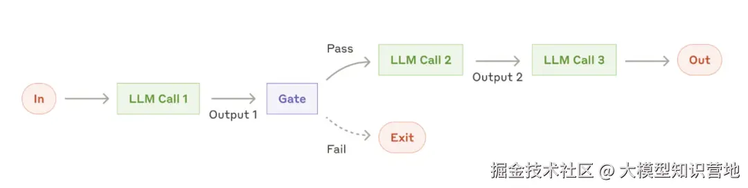 如图所示,提示词链工作流将任务分解为一系列步骤,其中每个LLM调用都会处理前一个步骤的输出,并且可以在任何中间步骤上添加程序检查,以确保流程仍按计划进行。
