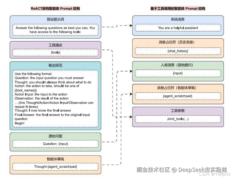 基于 ReACT 架构的智能体会将tools(工具描述)、agent_scratchpad(智能体草稿)、工具结果、推理等内容全部放到同一个 prompt 中,并通过提取 LLM的规范输出 来决定下一步的操作,这种模式会随着 LLM 输出的随机性,不同 LLM 性能的差异让程序变得异常脆弱。