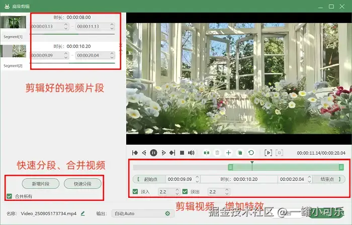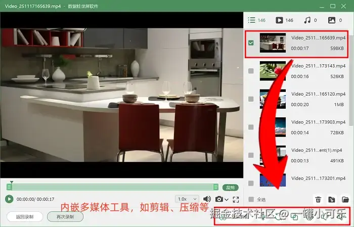 第3步:录制完成后,想做后续剪辑的话,就直接点击进入 “高级剪辑” 页面。在这里能快速裁剪多余的视频片段、添加简单特效,还能做分段处理,不用额外装剪辑软件,一步就能搞定视频优化。