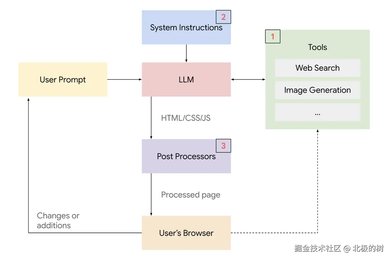 这是告诉模型"怎么生成UI"的规则。包括:何时使用哪种组件、如何布局、什么样的交互符合用户预期。论文中称之为"元提示"(meta-prompt),它相当于给模型注入了设计原则和前端开发的最佳实践