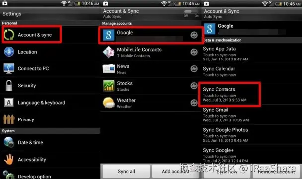 方案 2:通过 Google 账号自动同步通讯录