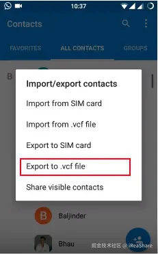 - 手机会生成一个 .vcf 文件,默认保存在内部存储根目录。