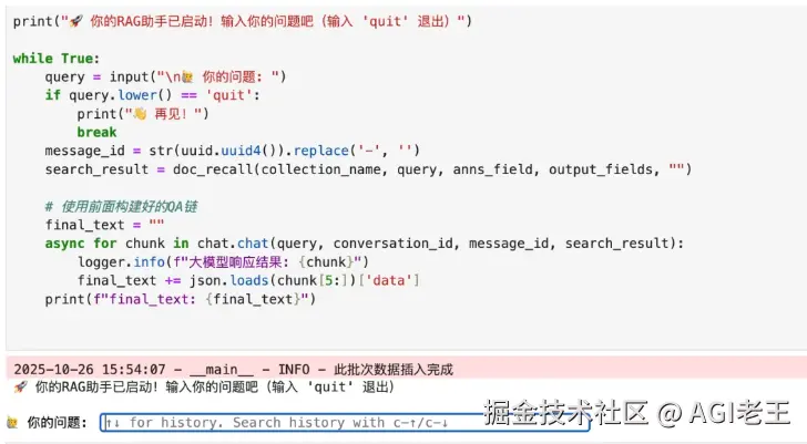 - 完整的RAG对话实例:从一个简单的问答功能开始,让你直观感受RAG的工作全流程。