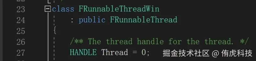Windows平台的线程为内核对象,通过HANDLE持有索引,这里的Thread就是底层的线程。