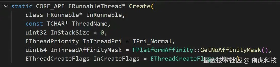 使用静态方法Create可创建FRunnableThread和底层线程: