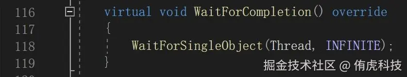 - WaitForCompletion:忙等,直到线程执行完。