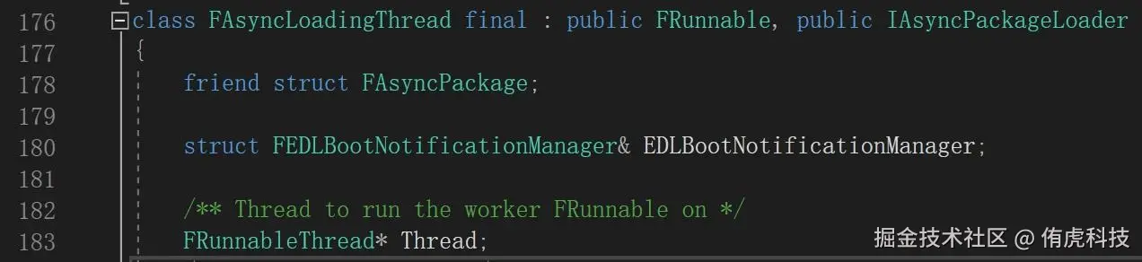 该类用于处理异步资源加载,会另开一个线程加载资源,继承了FRunnable,内部的Thread变量存储线程。