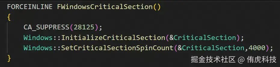 初始化CriticalSection,4000表示未获取到锁忙等的CPU周期。