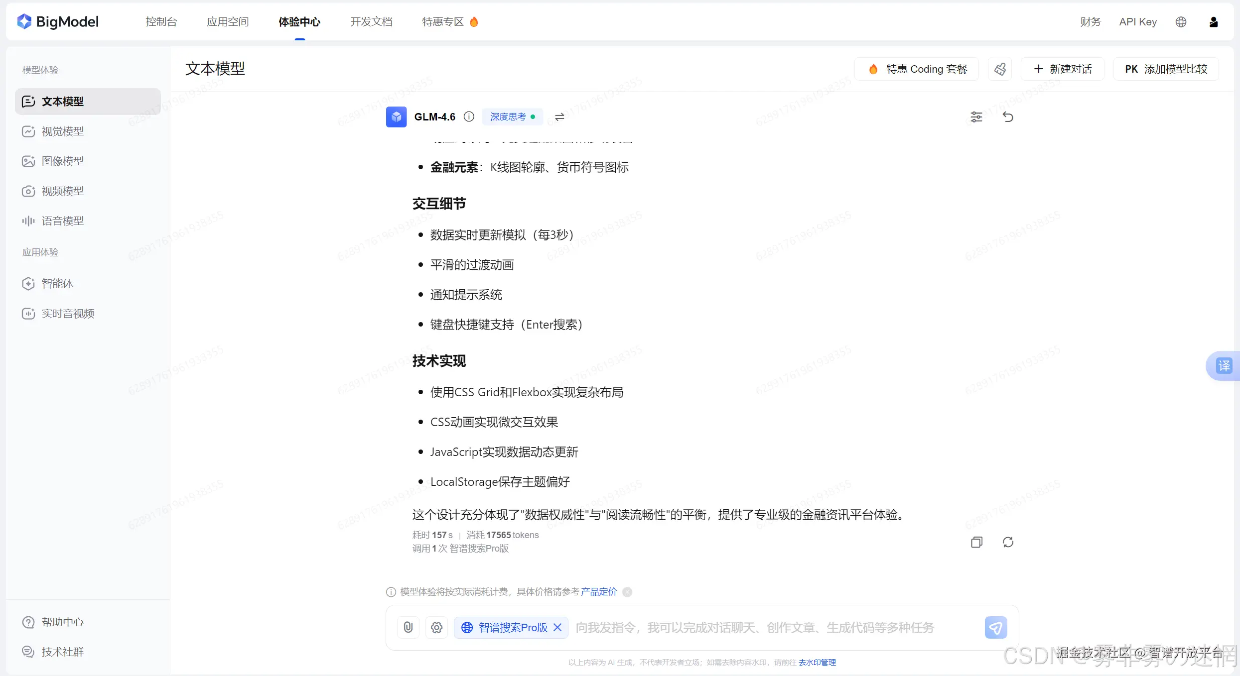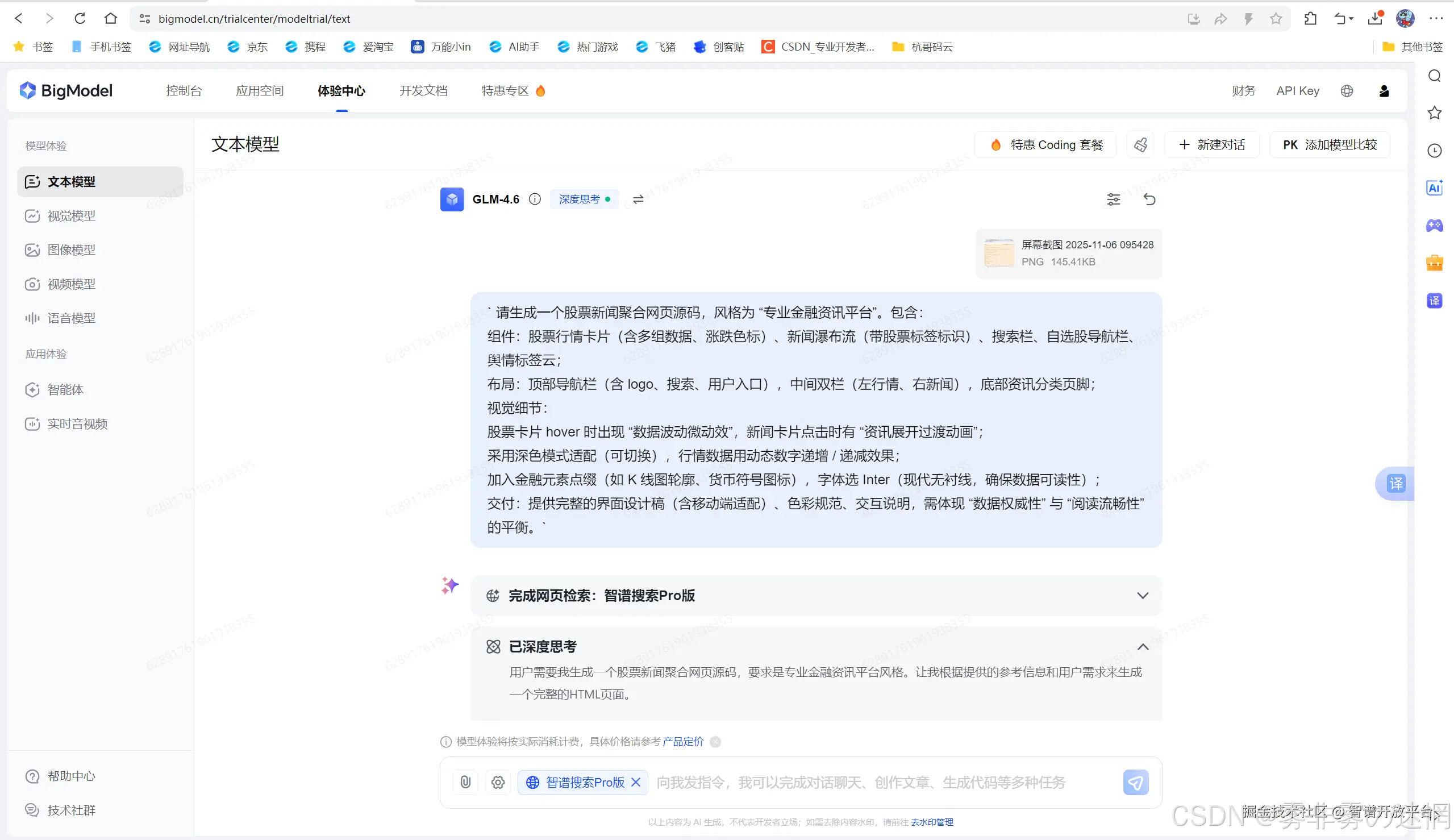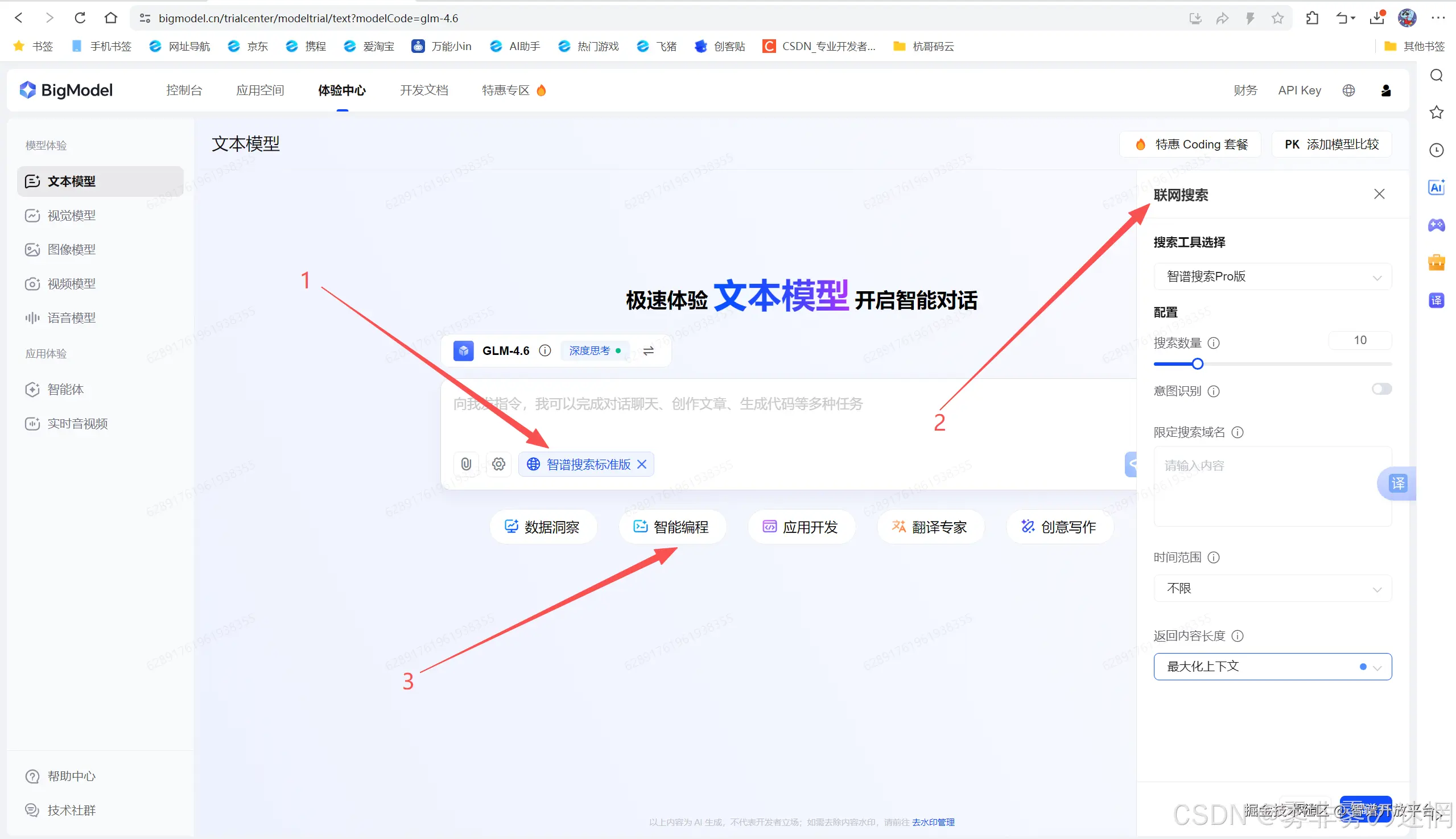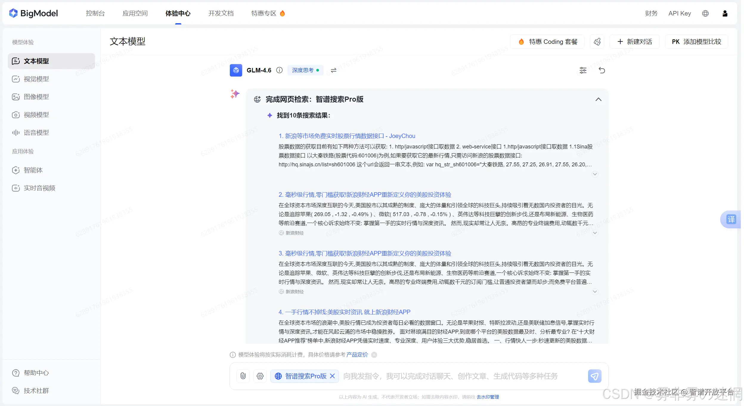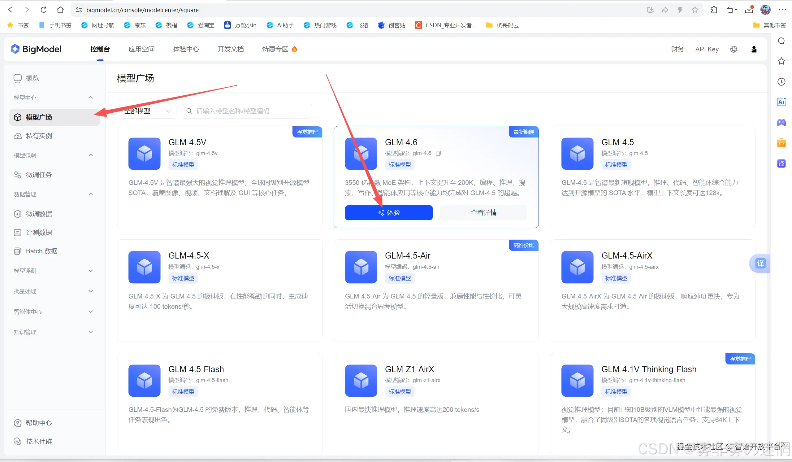 (1)打开模型广场,选择GLM-4.6大模型体验