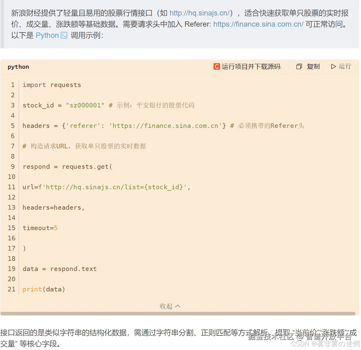 这是我事先准备好的提示词,可以参考:我这里采用的是新浪的股票信息获取