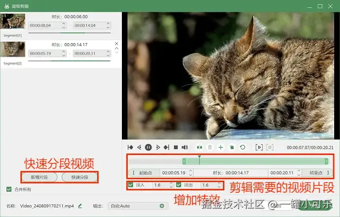 步骤3:录制完毕后可以选择 “高级剪辑” 媒体工具对视频进行编辑,比如快速分段视频、增加视频特效等,按照需求进行操作就好了。