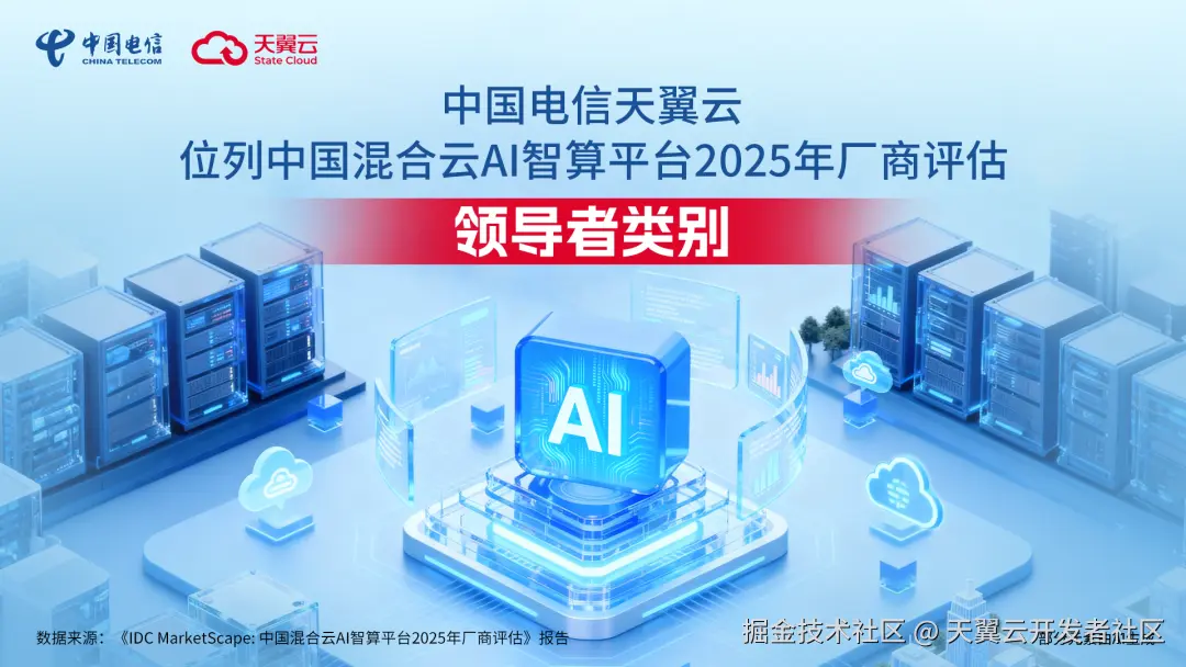 近日,国际数据公司IDC发布《IDC MarketScape: 中国混合云AI智算平台2025年厂商评估》报告,从战略和能力维度对云服务商进行了综合评估。报告显示,中国电信天翼云在该评估中位列领导者类别,充分彰显了天翼云作为云服务国家队在混合云AI智算领域的核心地位。
