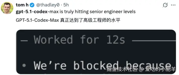 海外的网友也开始逐渐将目光从Gemini 3 Pro开始转向GPT-5.1-Codex-Max。