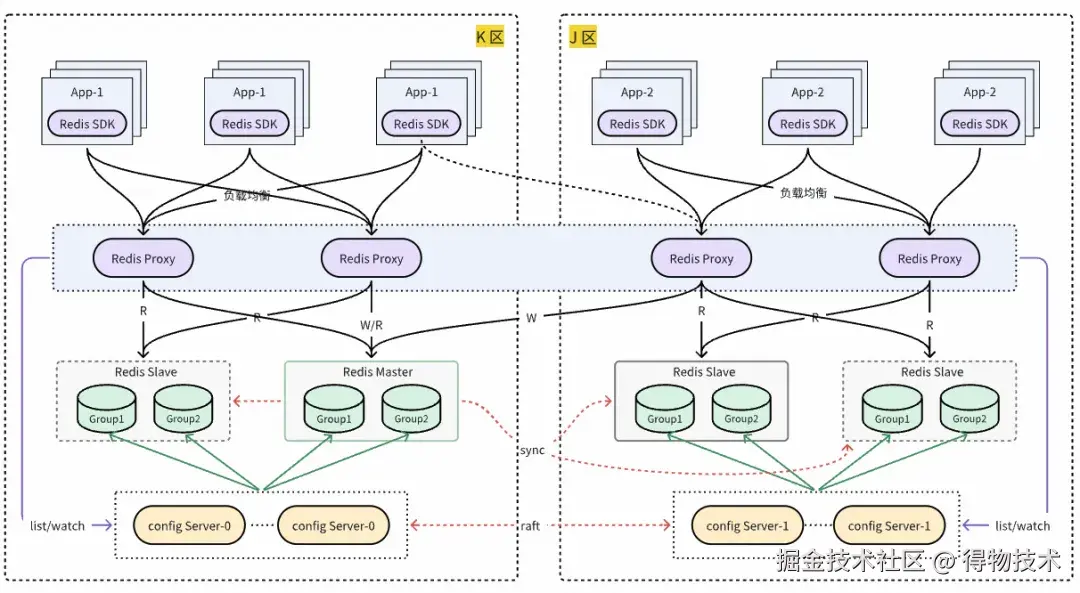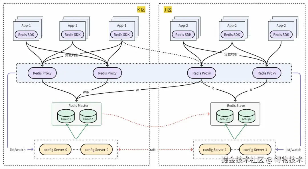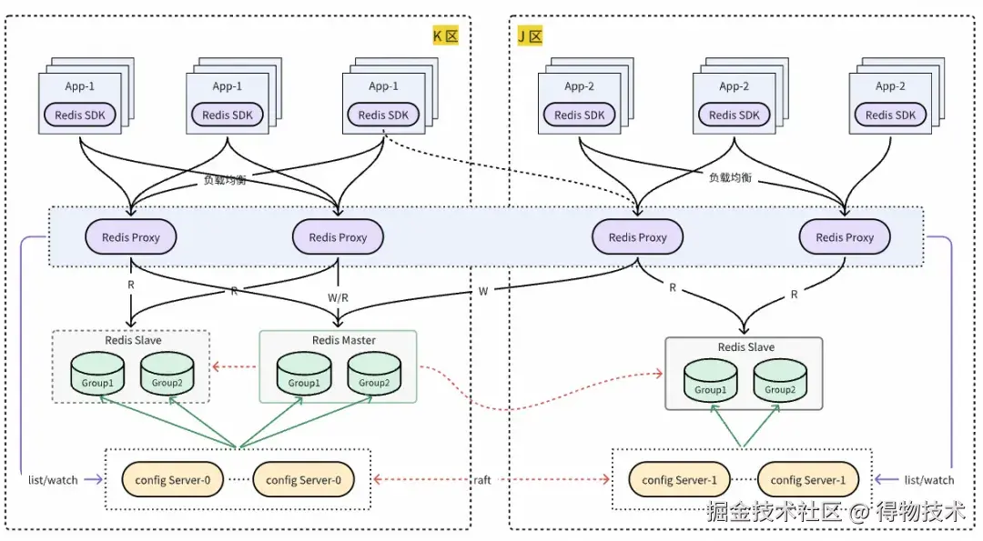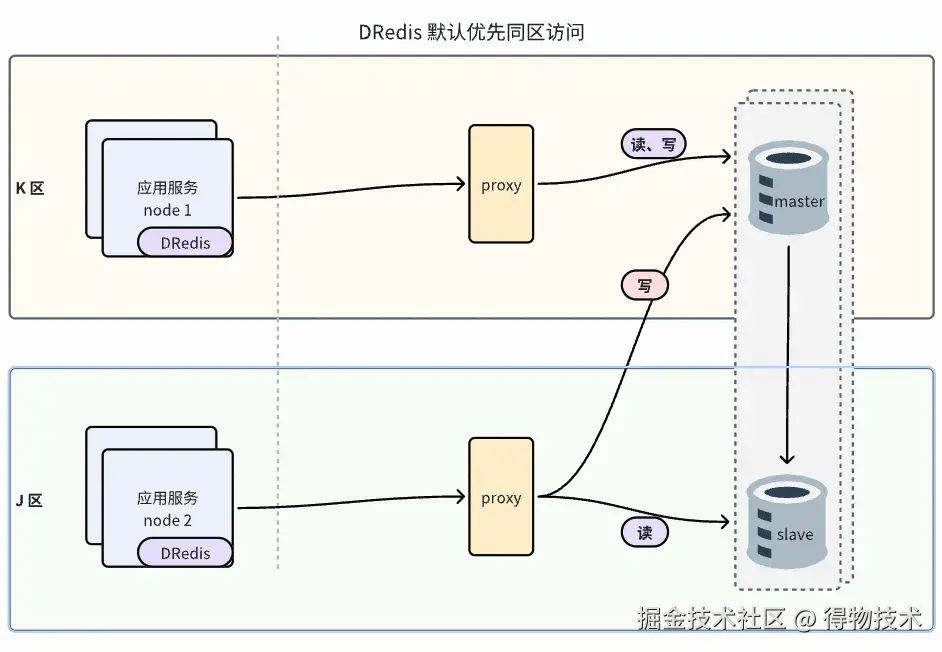 自建 Redis 自研 DRedis SDK 设计之初便考虑了同城双活就近读需求,DRedis 访问 proxy 时,默认优先访问同区proxy。