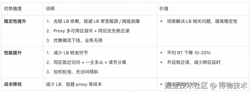 自建Redis通过自研DRedis SDK,通过SDK直连 proxy,不再强依赖 LB,彻底解决 LB 瓶颈和稳定性风险问题,同时,DRedis SDK 默认优先访问同可用区 proxy,天然支持同城双活就近读。